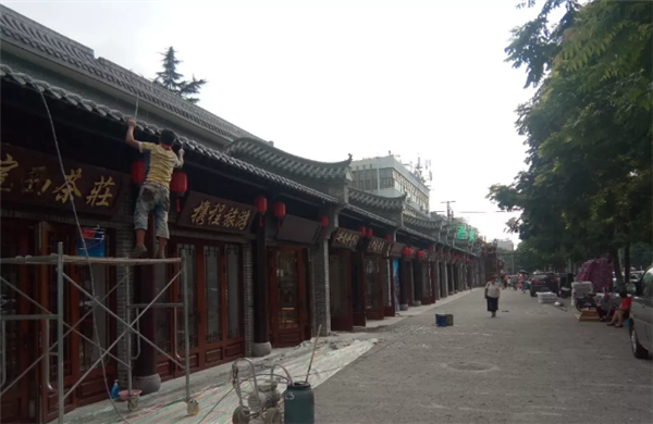 手凿天青石地面、木廊柱,仿古招牌、小青瓦卷轴屋檐……短短一个月时间