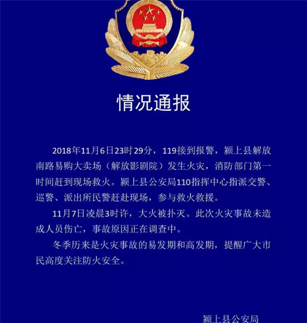 昨夜,阜阳颍上一大卖场发生火灾!警方发布通报.....