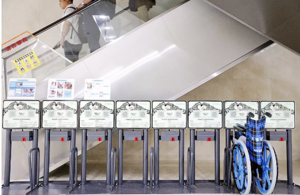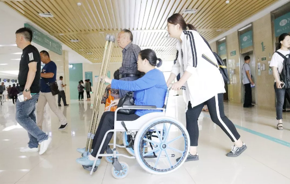 扫码、付款、解锁……,在市人民医院的门诊一楼大厅内,一位市民经过简单的操作后,从电子桩上取下一辆共享轮椅,随后搀扶腿部受伤的母亲坐下。这是市人民医院日前引进的首批共享轮椅。&